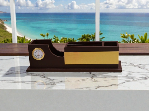 Promotional Wooden Pen Stand with clock WD05