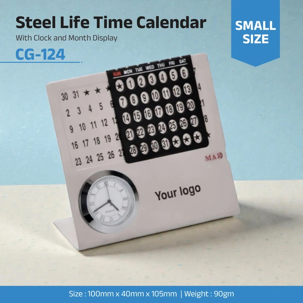 Steel Life Time Calendars with Clock & Month Display CG-124